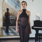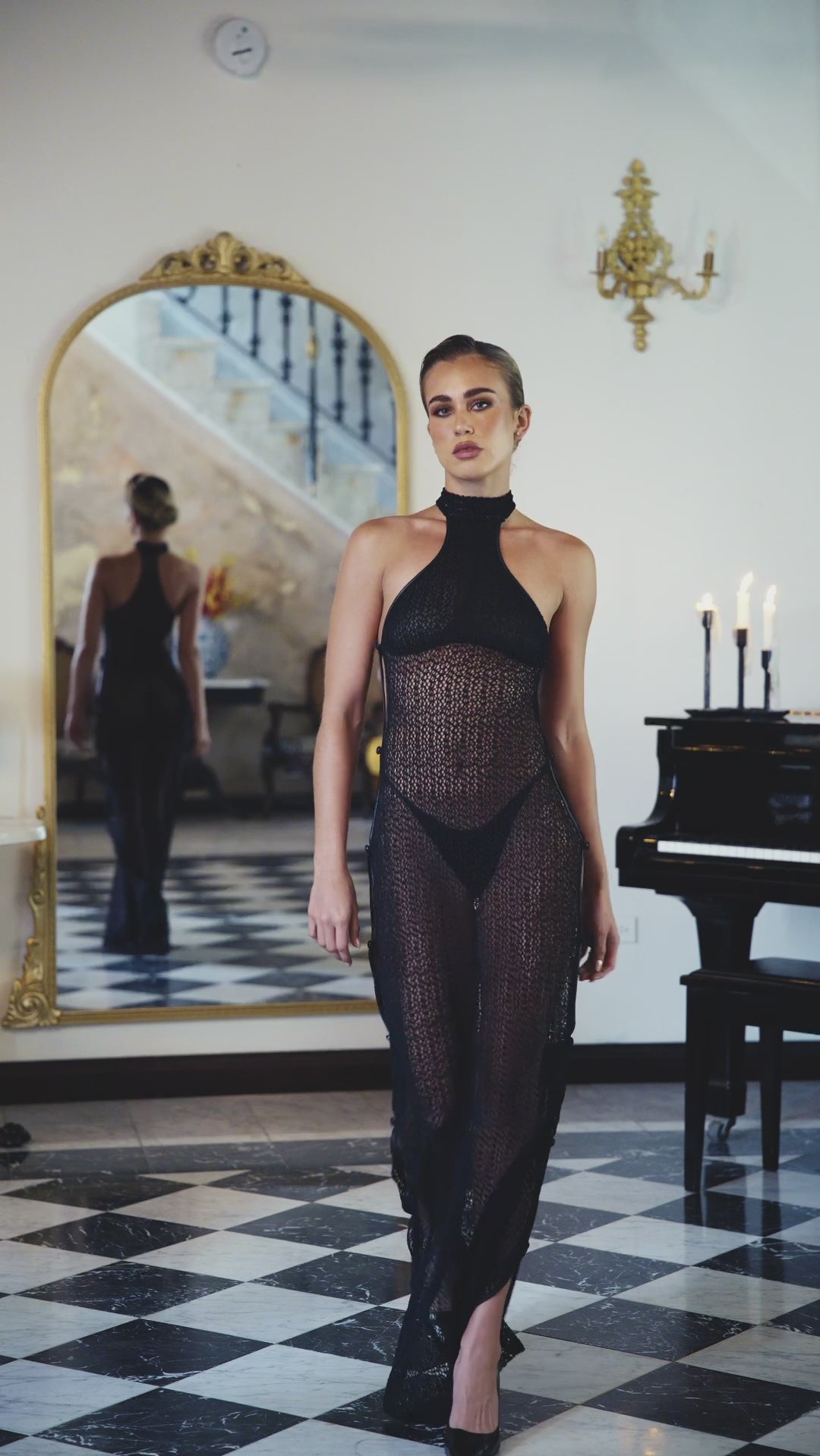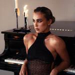 High Neck Dress with side Buttons detail. A gorgeous, sexy, sophisticated piece that boasts a flattering and feminine silhouette, designed to make a statement.